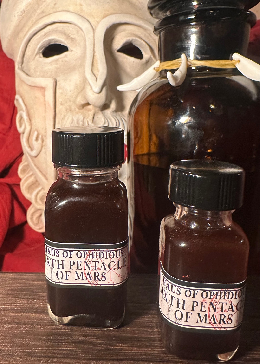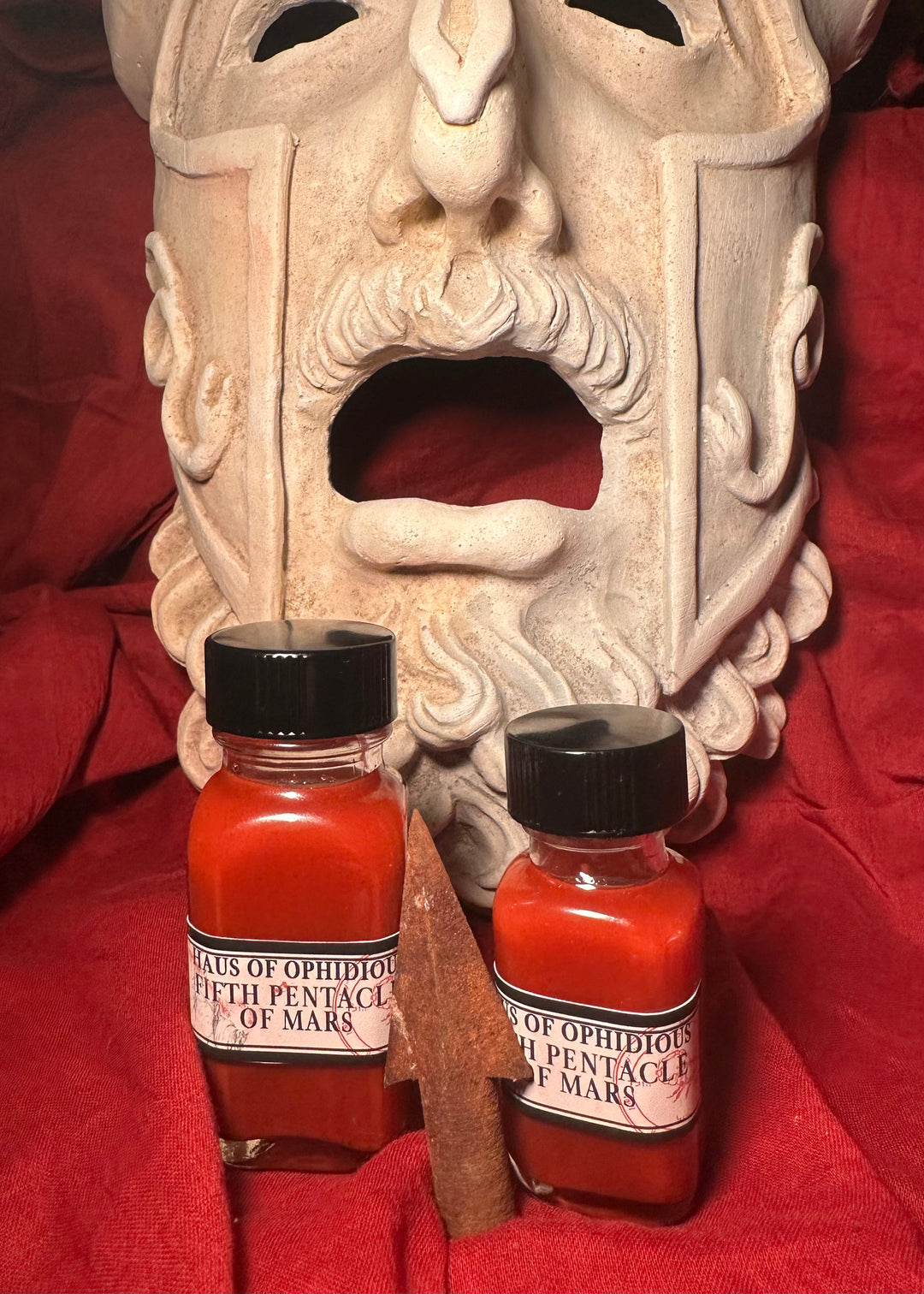 Mars is exalted in the sign Capricorn where he is dedicated and thorough in crafting a seamless plan to reach the end point of a given goal. In this sign, he is the epitome of self-directed movement and power, trained through rigorous dedication. The Exalted Mars Cazimi wares are a distillation of this focused fire to be worked when you need dedication, boldness, and courage, to impart the strength of Mars to successfully accomplish any given task, in works of war and protection, in the destruction of one’s enemies, and for communion with our wandering star in all works at his disposal.